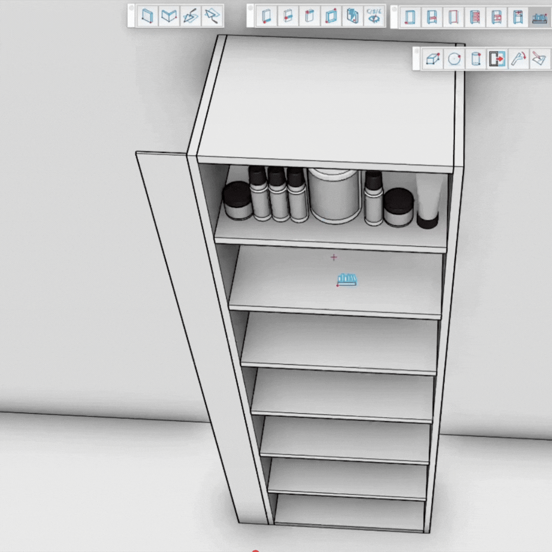 Un outil dédié permet de les intégrer directement sur les caissons. L’orientation peut être modifiée à la volée en maintenant la touche Option sur Mac ou Alt sur PC, ce qui offre une grande souplesse d’utilisation selon la configuration du meuble.