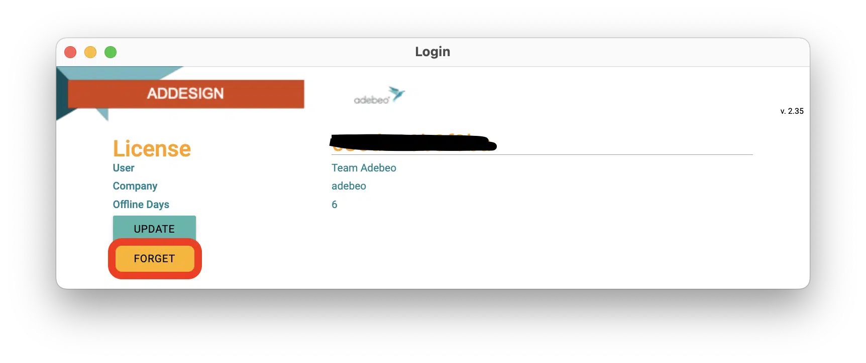Vous ne pouvez pas connecter votre licence AD Design sur plusieurs postes. Si vous voulez changer d’ordinateur, vous devez vous déconnecter sur la première machine.