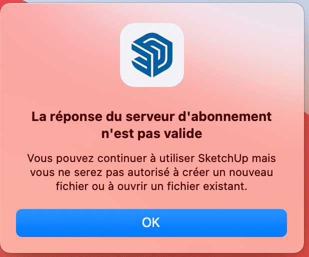 Redémarrez SketchUp, reconnectez-vous et c’est réglé !