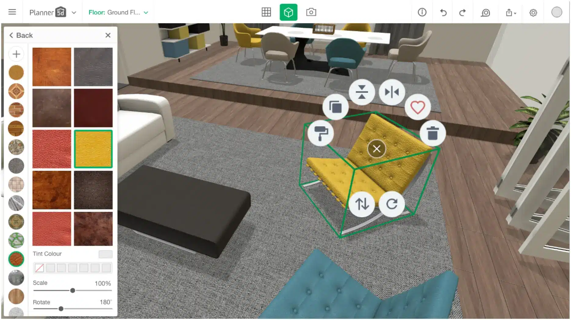 Planner 5D adopte une approche très différente. Son objectif principal est de rendre la création d’un plan ou d’un aménagement d’intérieur simple et accessible, sans courbe d’apprentissage complexe. L’interface repose sur le “glisser-déposer” : on choisit une pièce, puis on ajoute meubles, décorations ou textures, tout en visualisant le résultat rapidement.