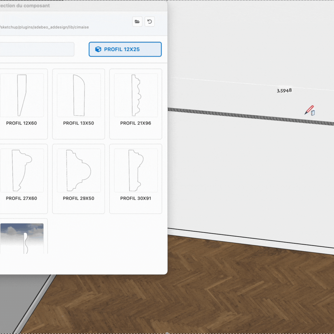 Créer des plinthes, corniches ou cadres sur SketchUp n’a jamais été aussi simple grâce à AD Design. Ses outils intuitifs permettent de générer des profils décoratifs précis, réalistes et entièrement personnalisables, en quelques clics.