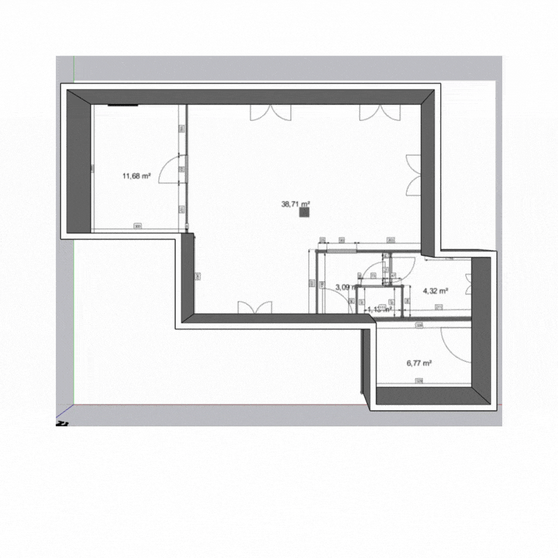 Le mur simple est idéal pour la création de cloisons intérieures. Cet outil permet de tracer des séparations droites en un instant, sans gestion complexe d’angles ou d’intersections. Il est particulièrement adapté pour modéliser des pièces, des bureaux ou des espaces intérieurs cloisonnés.