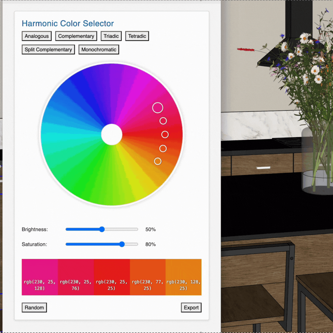 SketchUp propose un sélecteur de couleur basique. AD Design, au contraire, offre une roue chromatique complète permettant de :